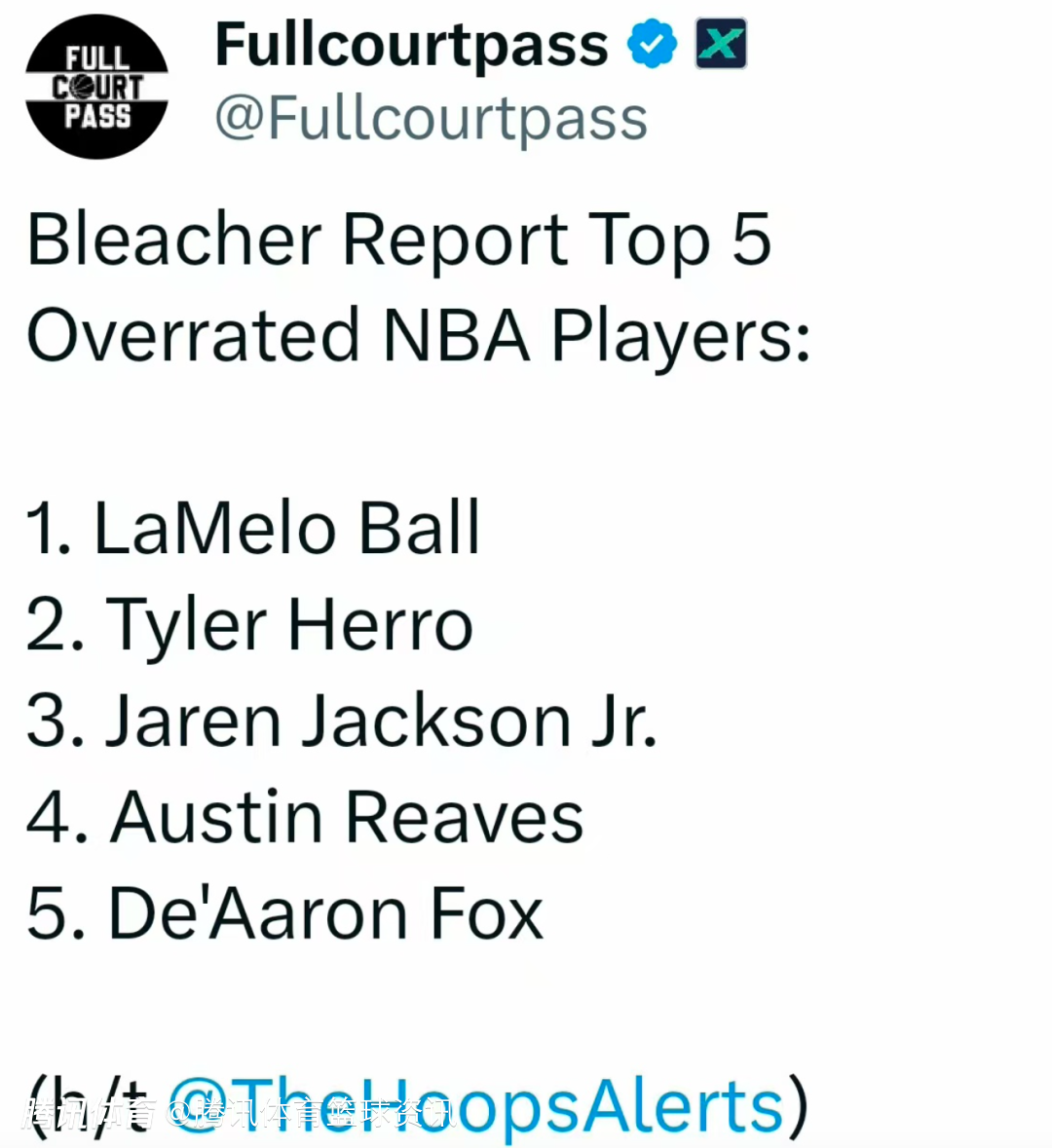 2025-08-01 21:10北京时间8月1日,美媒Bleacher Report评选出5大最被高估NBA球员。黄蜂球员拉梅洛-鲍尔排名榜首,希罗、里夫斯在列。