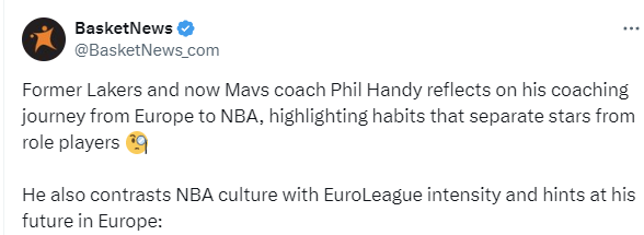 2025-08-01 23:20北京时间8月1日,独行侠队助理教练菲尔-汉迪接受媒体采访,回顾了自己从球员训练师转型成为助理教练的经历,还谈到了自己的未来职业规划。