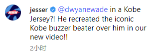 韦德先是在节目中回忆了当年被科比绝杀的一幕,他说道:“看看这个,我当时在防守他,而且防守很棒。但这球太疯狂了,我不知道当时能做什么。所以我找了一些人,让大家了解这一球意味着什么。”随后韦德身穿了科比的24号球衣,复刻了科比骑马射箭打板三分绝杀的一幕。