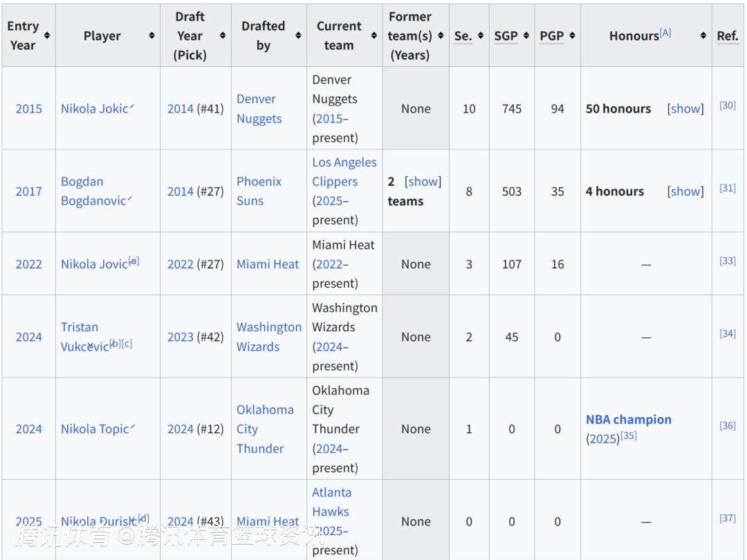 NBA现役共有6名塞尔维亚球员 其中4人都叫尼古拉