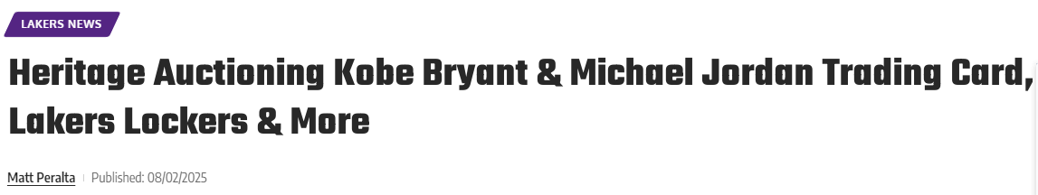 除了这张罕见的科比与乔丹联名卡,拍卖会上还将呈现其他藏品,例如2018-19赛季至2024-25赛季期间湖人队使用过的储物柜。詹姆斯、东契奇、里夫斯、布朗尼和克内克特等球员都曾使用过这些储物柜。 艾维称:“此次拍卖会的藏品质量对所有体育时代的收藏家而言都令人惊叹,这进一步巩固了Heritage拍卖行作为全球顶级体育收藏品平台的地位。从贝比-鲁斯、迈克尔-乔丹、米基-曼托等传奇人物的核心珍藏,到公牛队球场部分区域、湖人队储物柜这类千载难逢的藏品,这场拍卖会有望成为史上最棒的拍卖会之一。”