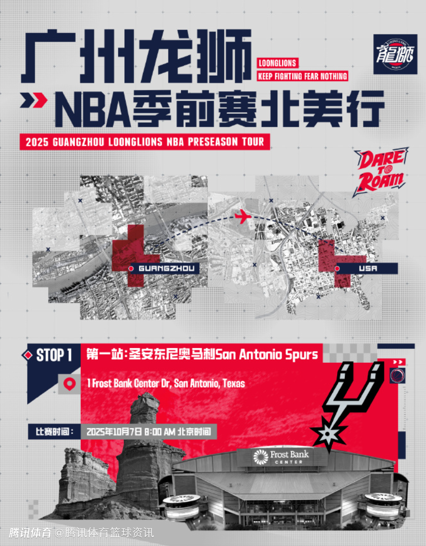 此前广州男篮官方曾公布了北美之行首战,他们将出战NBA季前赛,北京时间10月7日早上八点,会在圣安东尼奥对阵马刺。