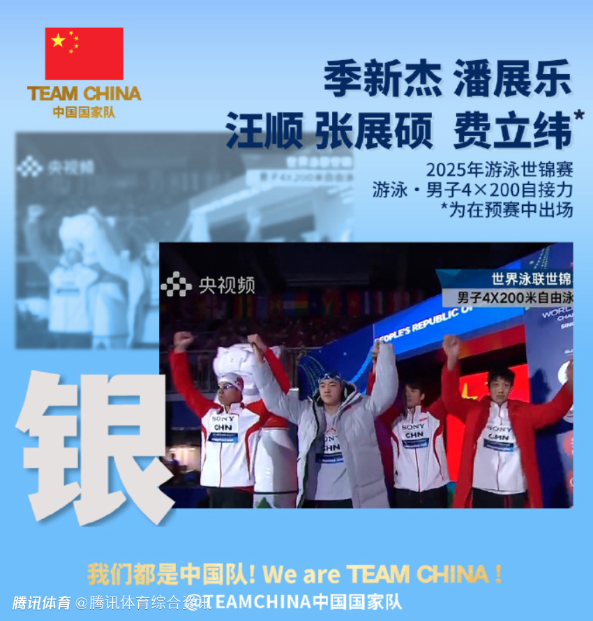 此前,汪顺与队友季新杰、潘展乐、张展硕合作夺得男子4x200米自由泳接力银牌,并打破亚洲纪录。