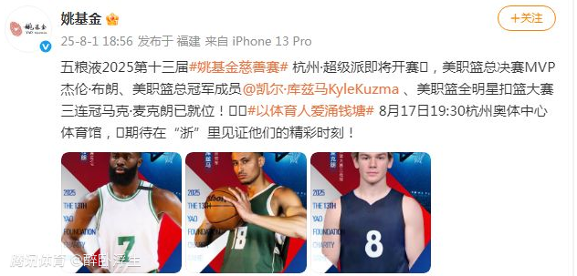 至于如今姚基金官宣参加姚基金慈善赛的国内6位球星名单:“2025第13届姚基金慈善赛杭州·超级派即将火热开赛,实力球星孙铭徽、王哲林、吴前、丁彦雨航、陆文博、赵岩昊,官宣加盟#以体育人爱涌钱塘# 以篮球之名,为爱而战,用热血为公益加码,期待在赛场见证他们的精彩瞬间!”