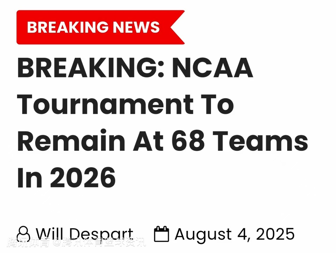 2025-08-05 05:40北京时间8月5日,NCAA高级副总裁丹-加维特发表声明,宣布2026年“疯狂三月”锦标赛的参赛队伍仍将保持68支。不过他也强调,关于锦标赛扩军的讨论将在下个休赛期继续进行。
