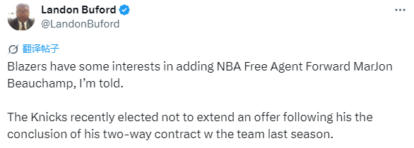 2025-08-05 07:30北京时间8月5日,根据记者Landon Buford的报道,开拓者队可能成为自由球员博尚的理想下家。上赛季,他效力过雄鹿、快船和尼克斯。