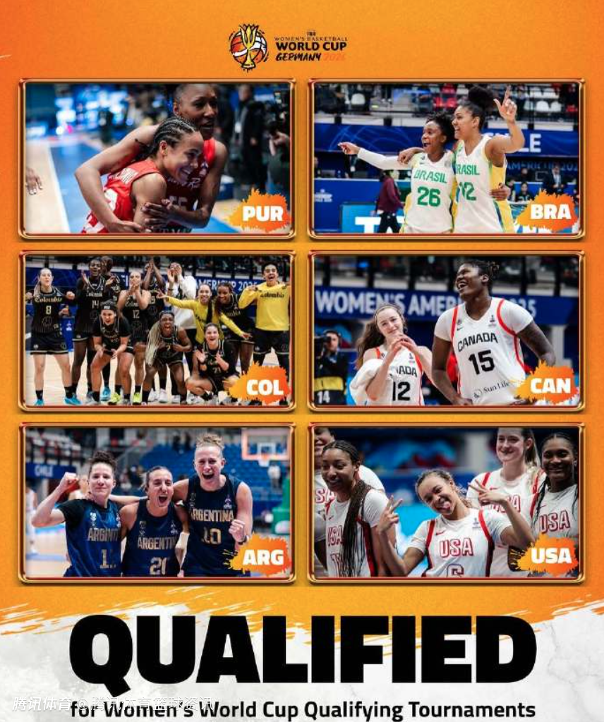 女篮美洲杯前6名:美国(已晋级)、巴西、加拿大、阿根廷、哥伦比亚、波多黎各