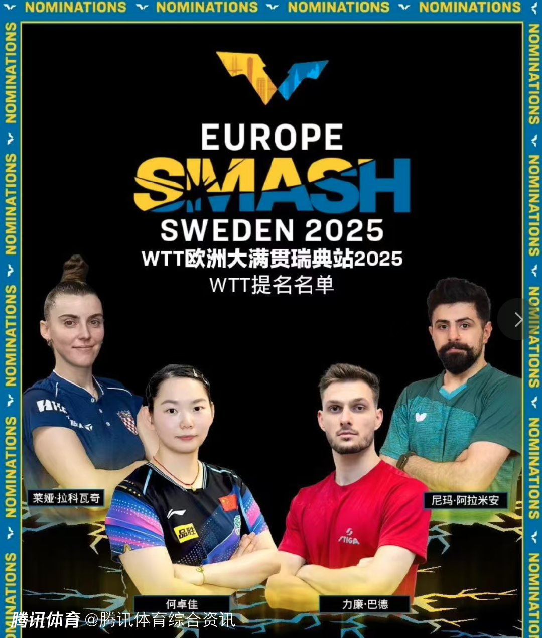 2025-08-06 14:50北京时间8月6日,WTT官方公布2025年WTT欧洲大满贯瑞典站外卡及提名名单,中国选手何卓佳获得WTT女单正赛提名,梁靖崑 / 温瑞博则拿到主办方颁发的男双外卡。