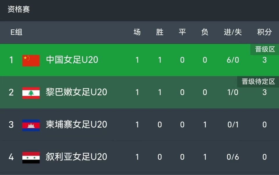 首轮战罢,中国女足和黎巴嫩女足都是积3分,但中国队凭借净胜球优势位列小组第一。