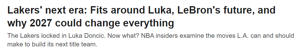 2027年夏天,扬尼斯-阿德托昆博、斯蒂芬-库里、尼古拉-约基奇、卡尔-安东尼-唐斯、多诺万-米切尔以及前湖人球员戴维斯都有可能成为自由球员。与东契奇并肩作战的吸引力、洛杉矶的市场、新老板以及薪资空间,这些因素结合起来可能会产生不错的效果。