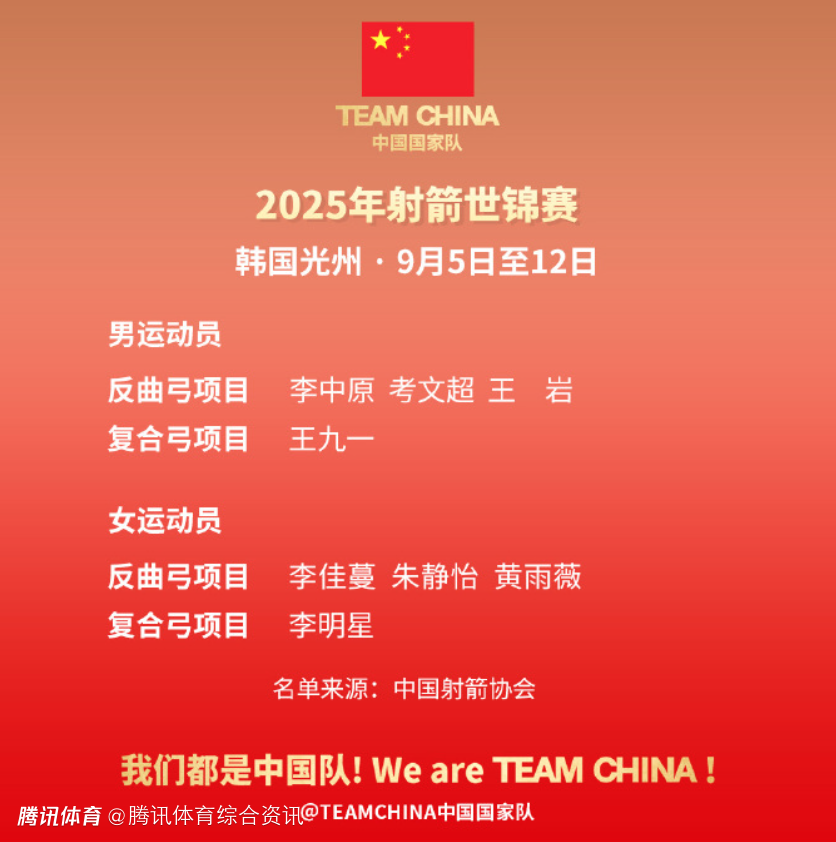 2025-08-08 10:50北京时间8月8日,2025年射箭世锦赛将于9月5日至12日在韩国光州举行。中国国家射箭队名单如下: