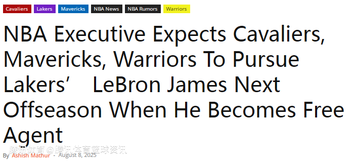 2025-08-09 06:50北京时间8月9日,据Dallas Hoops Journal报道,一位NBA高管预计,当下赛季湖人队球星詹姆斯成为完全自由球员时,骑士队、独行侠队和勇士队将会对他展开追逐。