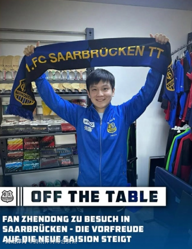 7月初,樊振东首度亮相萨尔布吕肯俱乐部,俱乐部晒出他身穿新队服图片,并写道:“我们非常高兴樊振东能够到访!我们一起讨论了新赛季的相关事宜——包括面临的挑战、对手以及我们的共同目标。双方都非常期待新赛季的到来。”