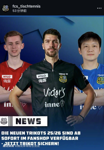 萨尔布吕肯发布新赛季德甲球衣 樊振东携队友出镜宣传