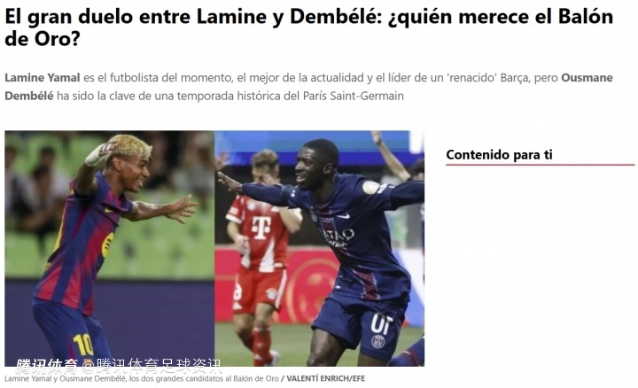 每日体育报:2025金球奖已成二人转!亚马尔VS登贝莱谁将问鼎足坛之巅?