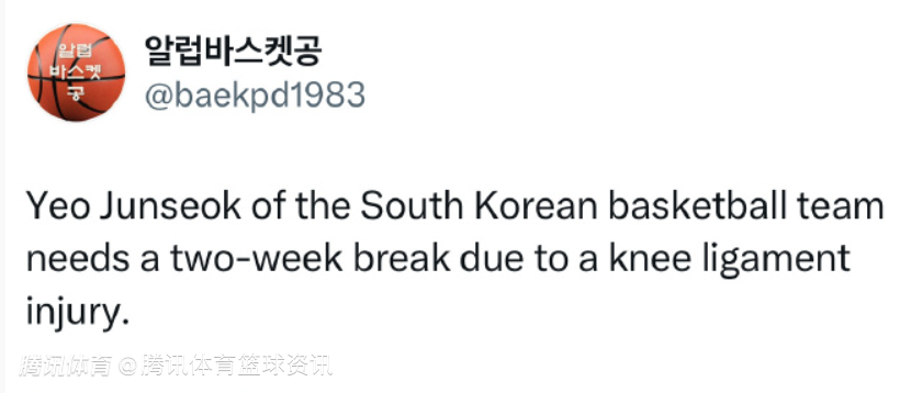 韩国男篮遭重创!主力锋线吕俊熙遭遇膝伤休战两周 无缘亚洲杯剩余比赛