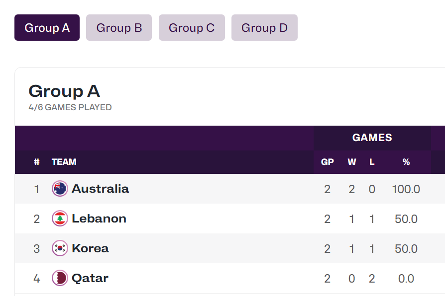 A组第二将在黎巴嫩队和韩国队之间展开,两支球队目前都是1胜1负,且小组赛最后一战直接交锋,胜者就是A组第二。黎巴嫩虽然缺少了核心后卫阿拉基,但他们整体展现出来的稳定性超过韩国队,没有带上归化球员的韩国队如今又伤了核心球员吕俊锡(膝盖内侧韧带损伤,不确定出战小组赛最后一战),情况会更加艰难。