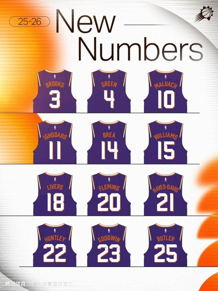 2025-08-10 07:30北京时间8月10日,太阳官方账号更新信息,晒出球队部分球员新赛季球衣号码。