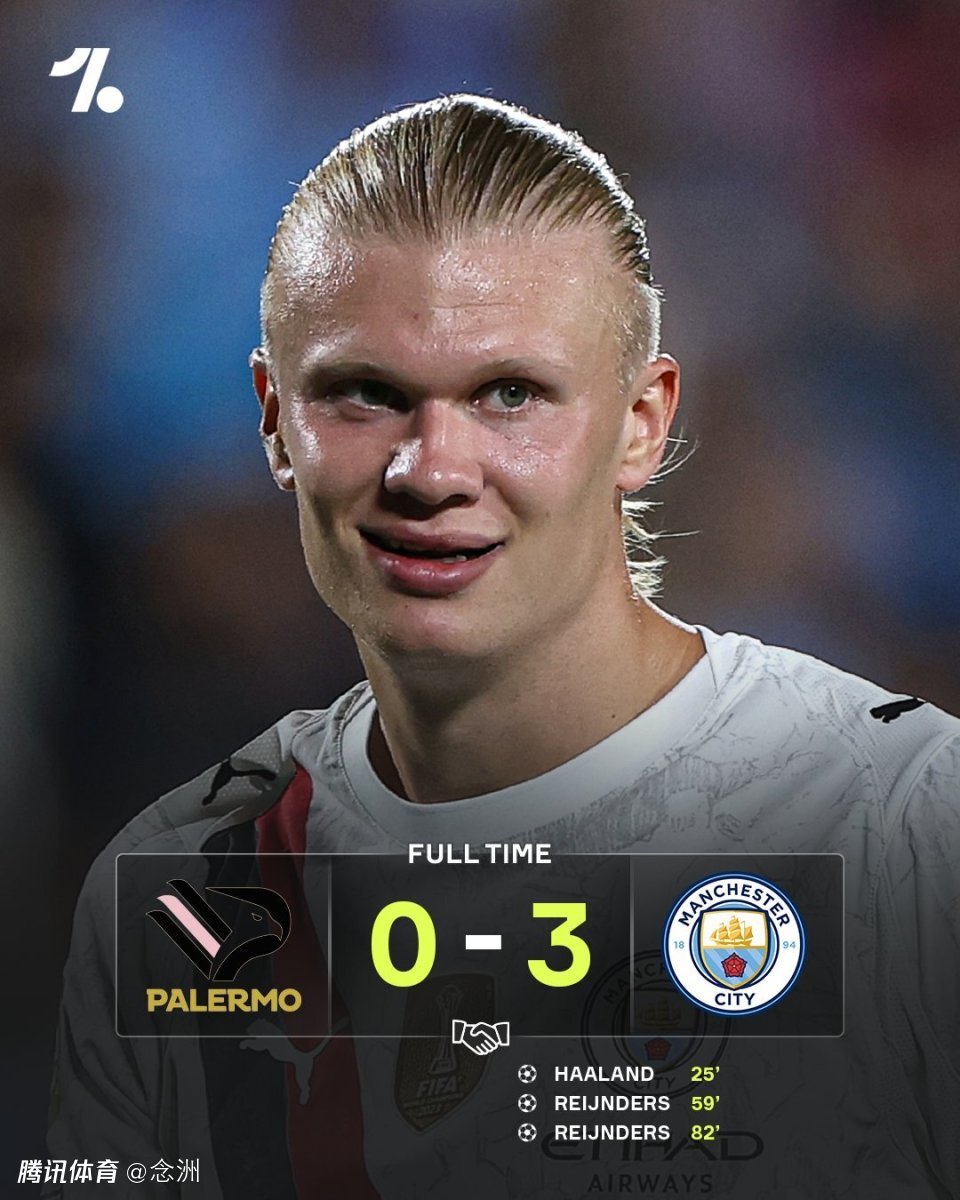 足球友谊赛,曼城客场3-0击败巴勒莫。上半场,哈兰德先拔头筹,下半场双方大面积换人,赖因德斯梅开二度。