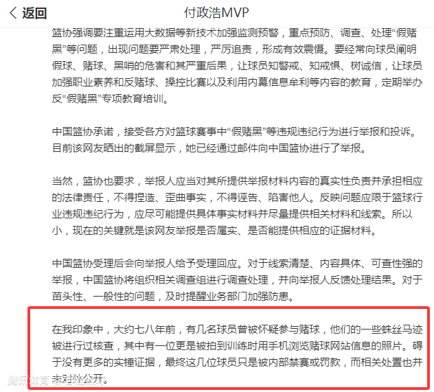 “碍于没有更多的实锤证据,最终这几位球员只是被内部禁赛或罚款,而相关处置也并未对外公开。”