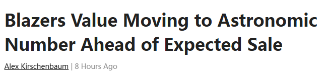《体育商业日报》的Bruce Schoenfeld写道,根据最近的人工智能评估,开拓者队进入市场时的估值预计会在40亿美元左右。“值得一提的是,最近的人工智能评估显示,海鹰队估值为70亿美元,开拓者队接近40亿美元,略高于CNBC近期给出的约60亿美元和35亿美元的估值。但就像凯尔特人队、湖人队的交易,或是佳士得拍卖行里的塞尚和高更画作一样,一旦竞价开始,估值可能就无关紧要了。这两支球队的最终售价甚至可能更高。”