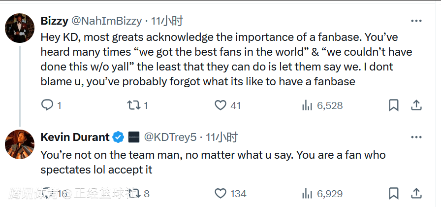 杜兰特:“不,他们知道球迷吃这一套。”