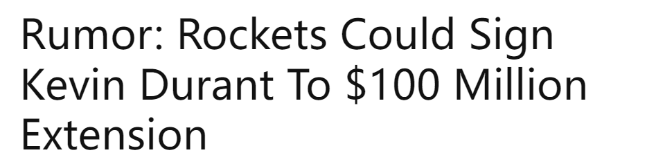 2年1亿美元!杜兰特有望与火箭达成续约:比顶薪标准少拿2210万