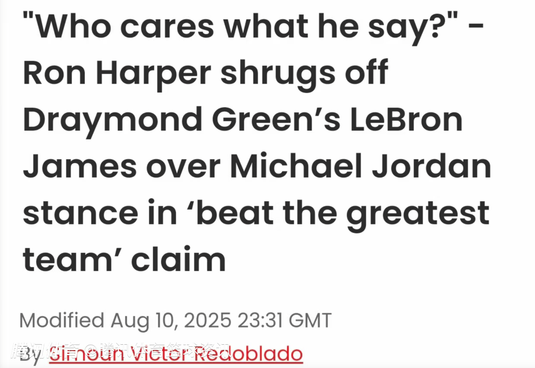 2025-08-11 11:40北京时间8月11日,NBA名宿罗恩-哈珀回应了追梦的争议言论。此前,追梦曾在直播节目中将詹姆斯排在他个人历史前五球员榜单中,位置在乔丹之前,并表示乔丹没有击败过史上最伟大的球队,而詹姆斯做到了。