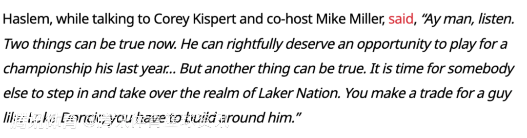 哈斯勒姆表示自己理解詹姆斯渴望再夺一冠的心情,但他也表示,或许是时候让詹姆斯退居二线,让东契奇来主导局面了。他说道:“詹姆斯有权渴望效力于争冠球队,尤其是考虑到这可能是他在洛杉矶的最后一年;而湖人队也有权围绕队里的年轻超级巨星建队。”