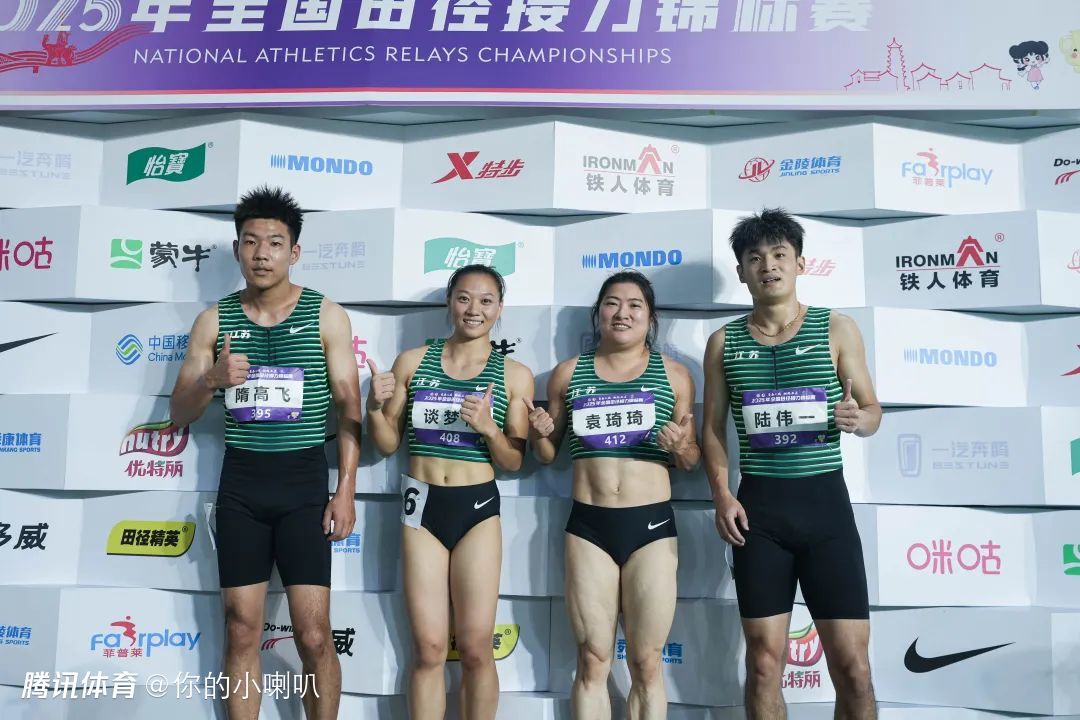 为配合全运会新增混合4x100米接力项目的设置,本届赛事首次增设这一项目。决赛中,共有4支队伍刷新PB,江苏队跑出40秒55创造新的全国最好成绩并摘金,广东队以40秒81的表现斩银,上海队以41秒44获铜。