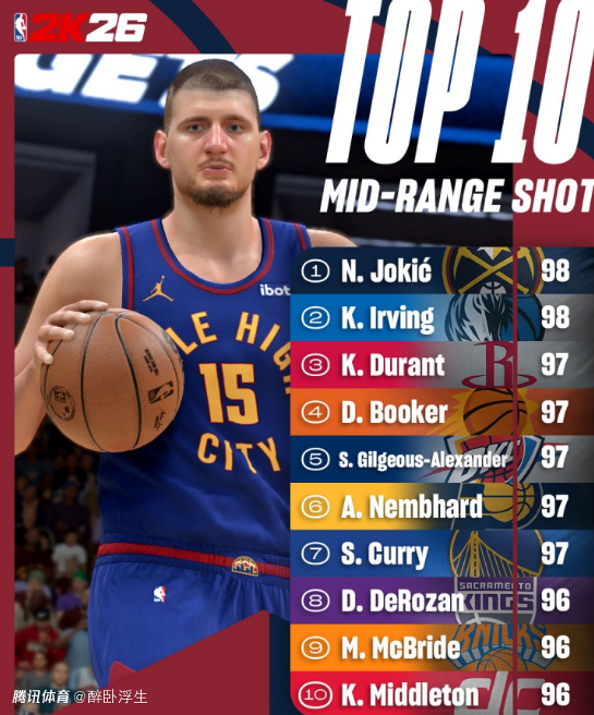 NBA2K官方中投值:约基奇欧文98并列第一 杜兰特库里97并列第二