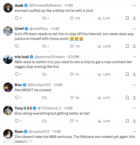 “锡安的公关团队应该告诉他别上网,发这些东西根本没有什么意义”