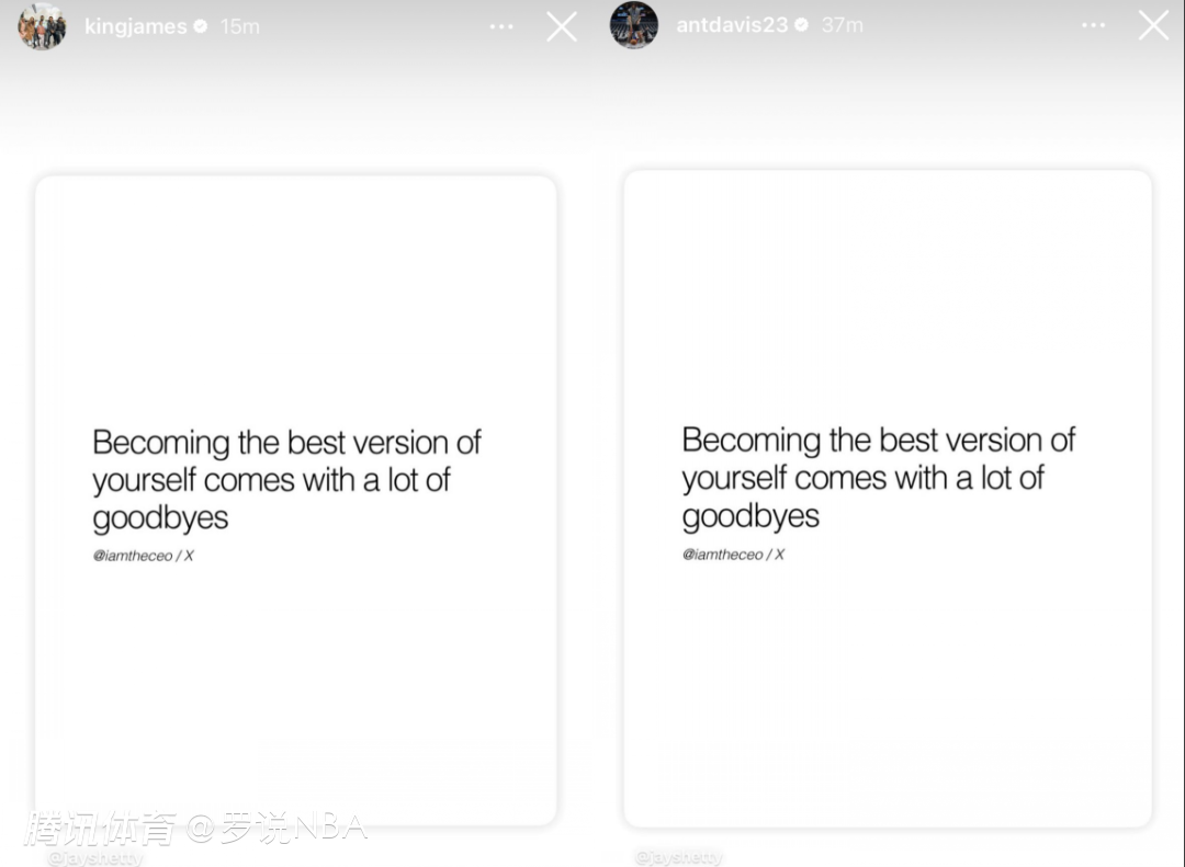 詹姆斯浓眉晒相同箴言引猜测!成为最好的自己 总要经历许多告别