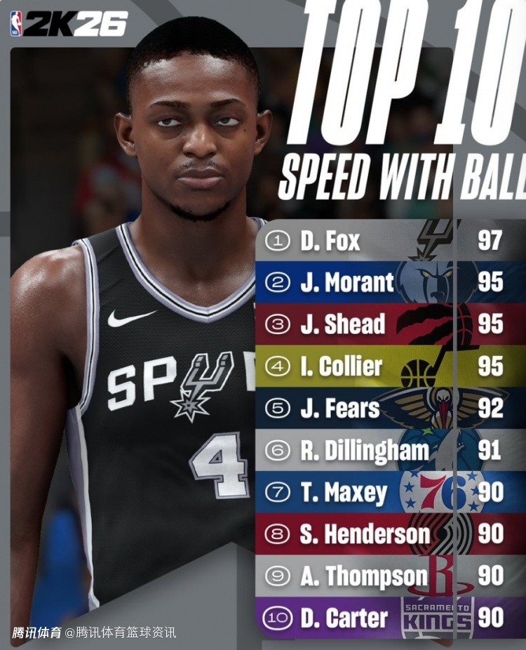 NBA 2K26速度榜:福克斯领跑Top10 莫兰特第二阿门-汤普森上榜