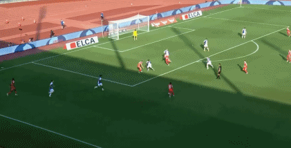 第10分钟,格纳布里拿球杀到禁区前沿尝试了一脚远射,但皮球击中后卫后出现折射偏出目标。