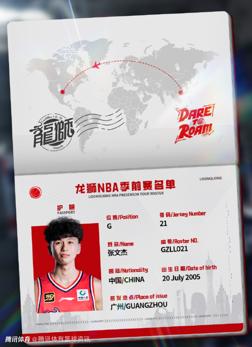 将随队参加NBA季前赛!广州男篮官方宣布张文杰加入球队