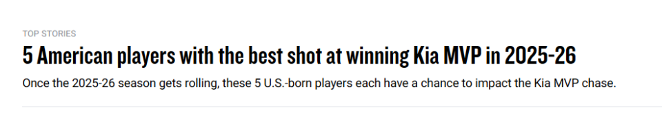即便如此,NBA官网还是列出了一份名单(排名不分先后),认为这五位是最有机会在2025-26赛季获得MVP或收获大量选票的美国球员。