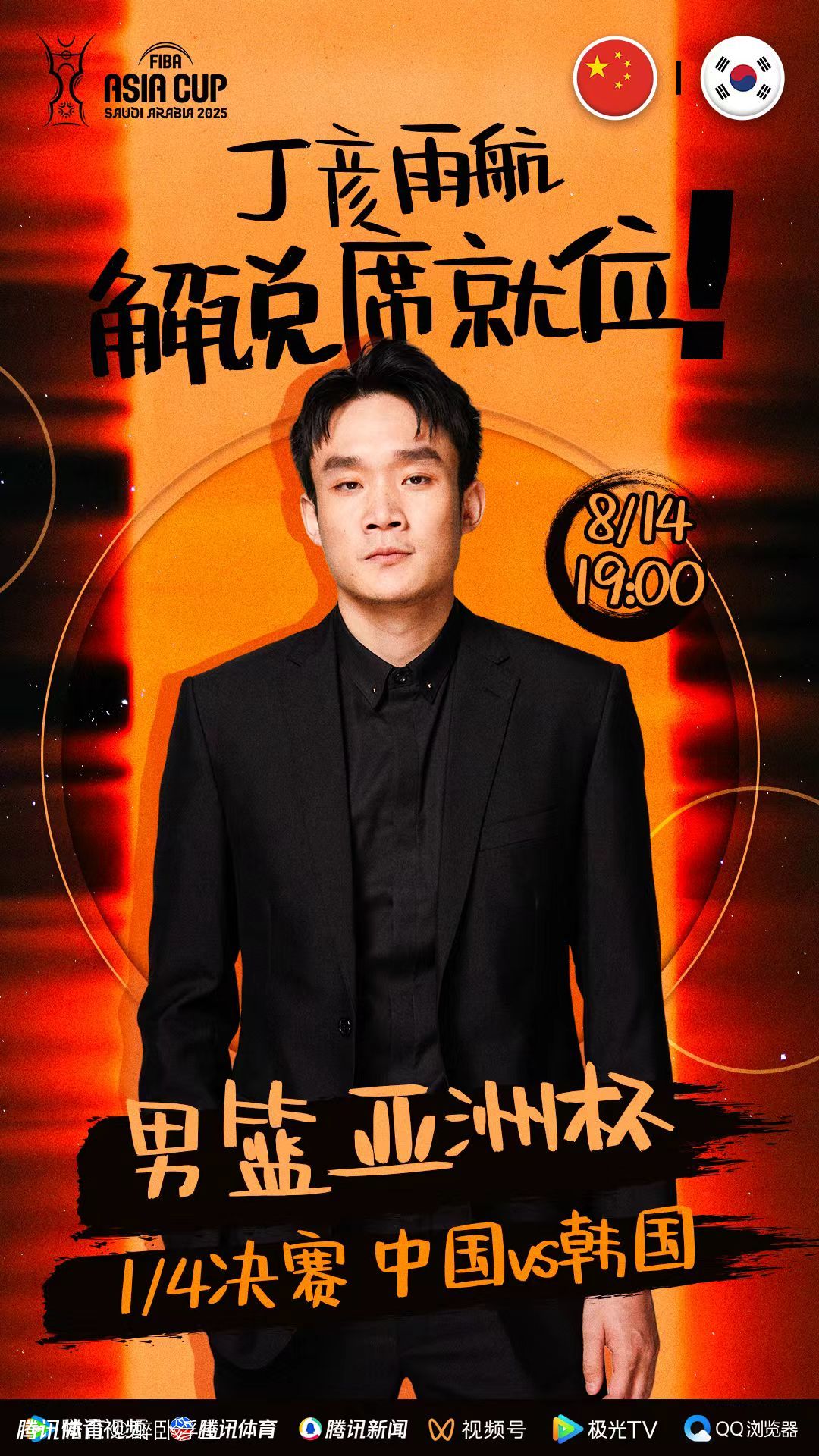 2025-08-14 09:40北京时间8月14日,2025年男篮亚洲杯1/4决赛焦点战,中国男篮将对决老对手韩国男篮。上届亚洲杯首秀中国男篮就输给韩国男篮,再次狭路相逢双方的外线三分比拼将很大程度决定比赛胜负,中国男篮需要做好外线防守与遏制对手攻防转换速度,同时中国男篮需要在胡金秋、赵睿等引领下打出自身的特色,尤其是发挥出体型优势,而中国男篮也是更被看好赢球,去冲击改制后的首次亚洲杯四强。中国男篮前国手丁彦雨航做客解说本场比赛。