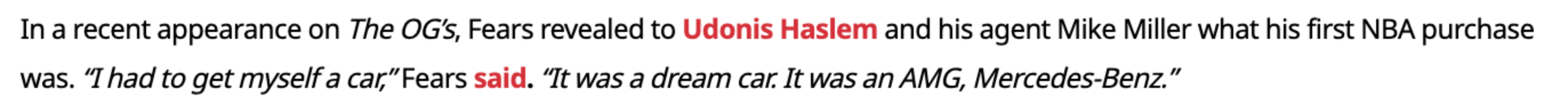 2025-08-14 10:10北京时间8月14日,近日,鹈鹕新秀费尔斯在做客《The OG’s》节目时,向哈斯勒姆和自己的经纪人迈克-米勒透露自己在NBA挣到钱后的第一笔消费。