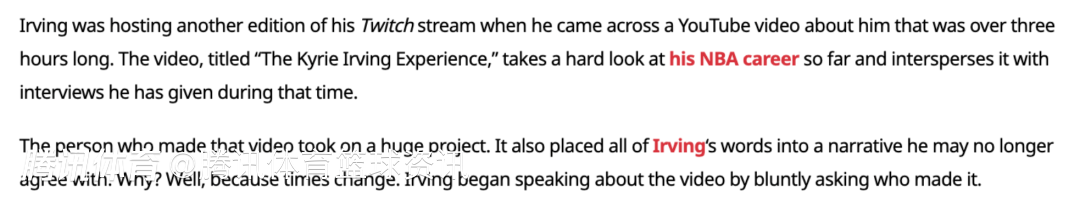 制作这个视频的人还把欧文过往的言论整合进了一种他如今可能不再认同的叙事里,所以欧文在谈及这个视频时,开门见山就问是谁制作的。