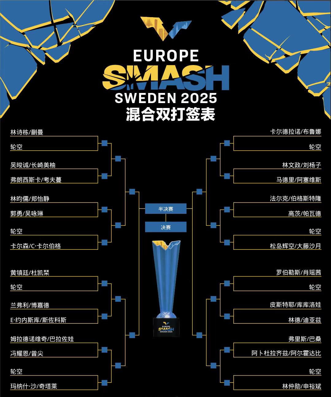 WTT欧洲大满贯瑞典站混双签表:国乒独苗林诗栋/蒯曼镇守上半区