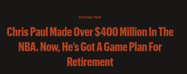 福布斯表示,在NBA的商业版图中,没有哪位现役球员的经历比保罗更丰富。库里没有,杜兰特没有,甚至连詹姆斯也没有。