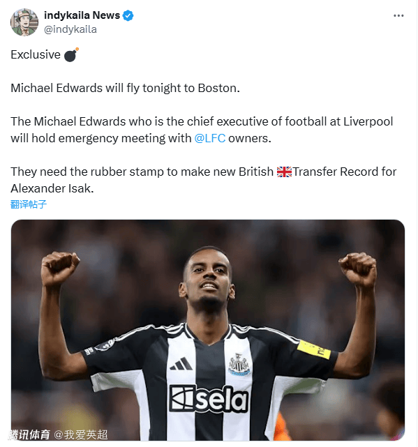俱乐部CEO(首席执行官)迈克尔-爱德华兹今晚将飞往波士顿,他将在那里与俱乐部老板们举行紧急会议。并且向老板申请批准,为伊萨克开出新的英国创纪录的报价。