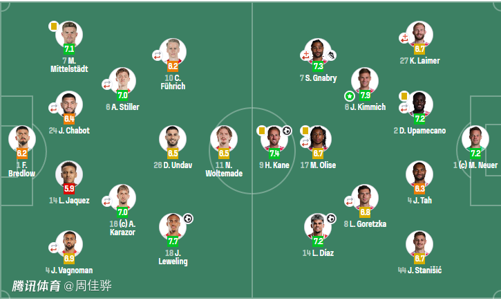 后腰:8-格雷茨卡(90’20-比朔夫)、6-基米希