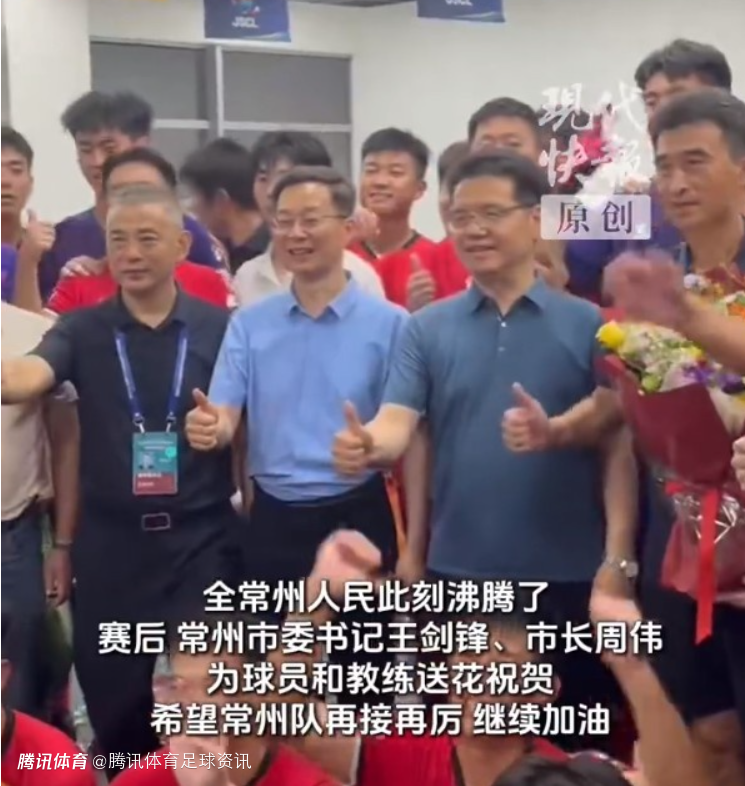 据《现代快报》报道,赛后,常州市委书记王剑锋、市长周伟为球员和教练送花祝贺。