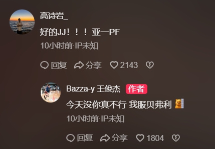 王俊杰则回复说:“今天没你真不行,我服贝弗利!”