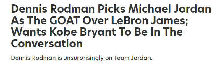 罗德曼:乔丹是历史最伟大球员 科比应该被纳入到讨论当中
