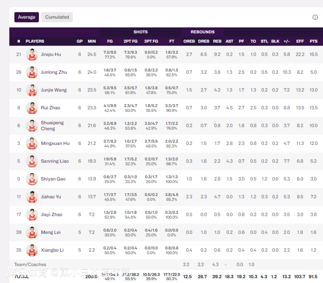 2025-08-18 09:40中国男篮最终在本届亚洲杯上取得了亚军的好成绩,时隔10年重新站在领奖台,这支郭导口中没有超级明星的平民男篮创造了奇迹,胡金秋、王俊杰两位前场球员还都入选了最佳阵容。那么本届亚洲杯打完,男篮各项数据王都是谁呢?