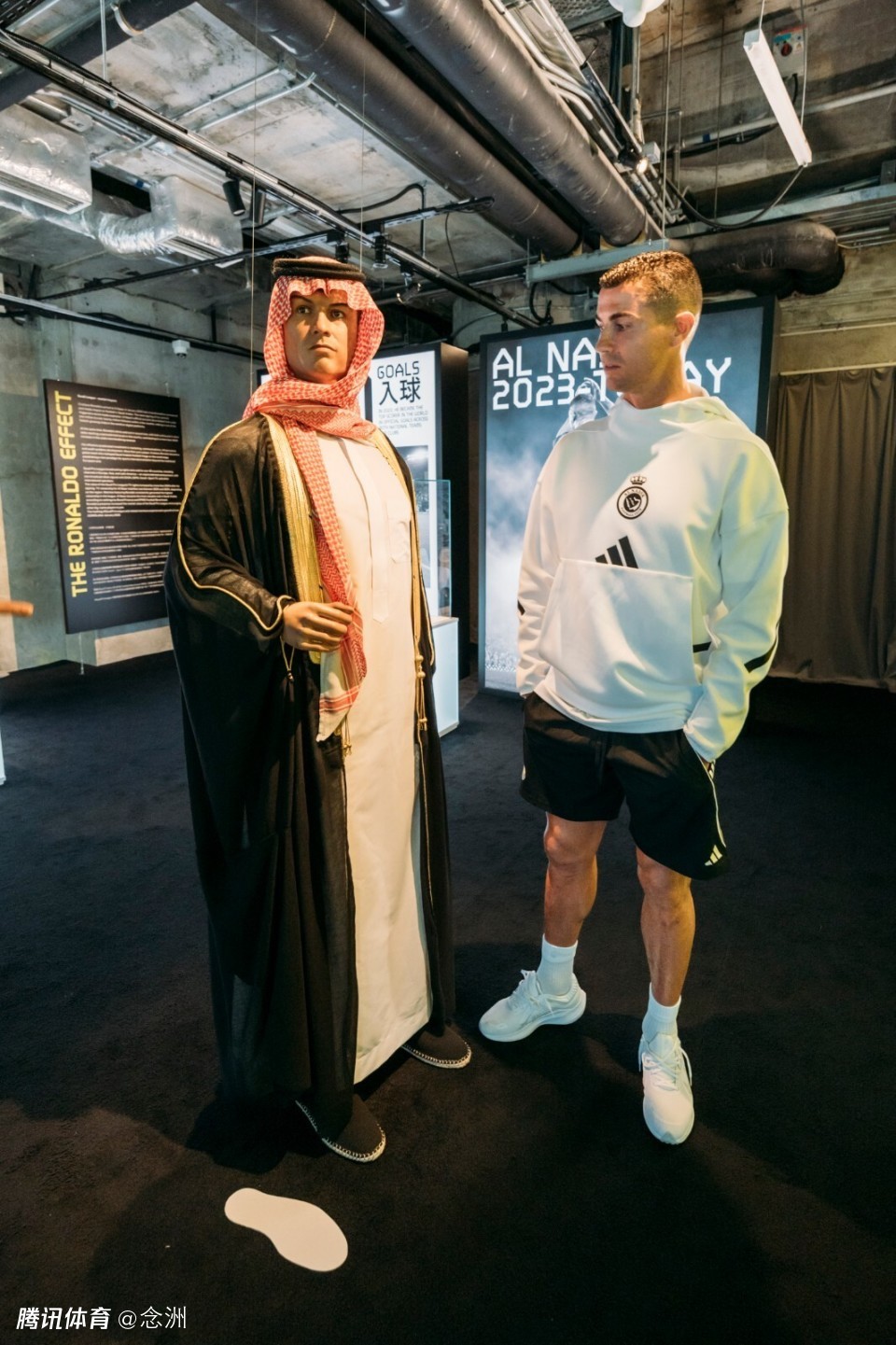C罗正在香港备战沙特超级杯,明晚20点将在半决赛对阵本泽马领衔的吉达联合。而8月17日晚8点32分,C罗在利雅得胜利CEO塞梅多等人的陪伴下,来到位于K11 MUSEA的CR7 LIFE香港博物馆。