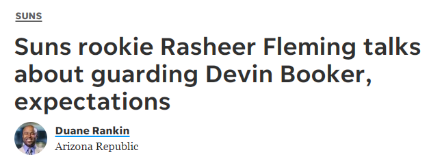 弗莱明计划凭借高水平的防守,在太阳队赢得自己新秀赛季的初始上场时间,“我觉得凭借自己的能力和具备的条件,我可以防守很多球员。我认为自己在防守端能做得很好,之后进攻端的一切都会水到渠成。”